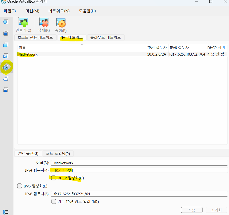 2. NAT 네트워크 만들기 (환경 설정)