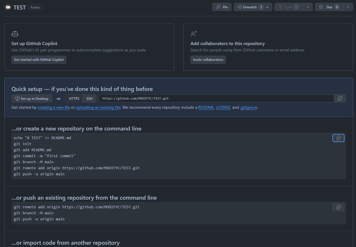 3. …or create a new repository on the command line ์์ ๋ณต์ฌ ๋ฒํผ์ ๋๋ฅด๊ธฐ